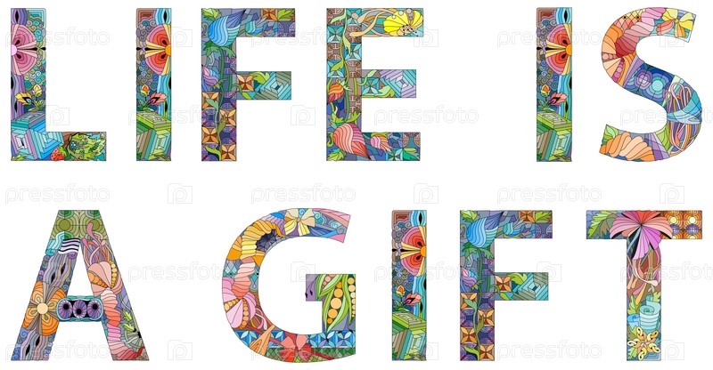 Ручно нарисованная иллюстрация 'Жизнь - это подарок' для футболки и других украшений