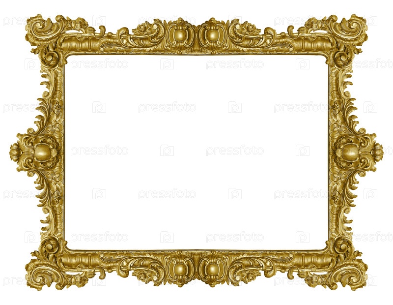 Золотая рама для картин, зеркал или фотографий, изолированных на белом фоне