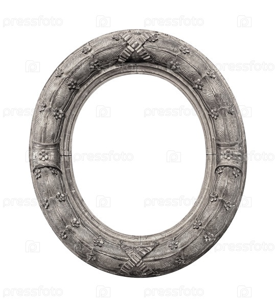 Серебряная овальная рама для картин, зеркал или фотографий изолирована на белом фоне
