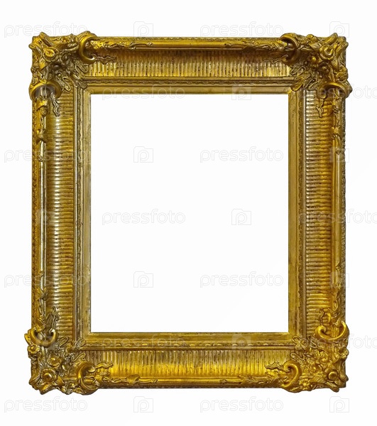 Золотая рама для картин, зеркал или фотографий, изолированных на белом фоне