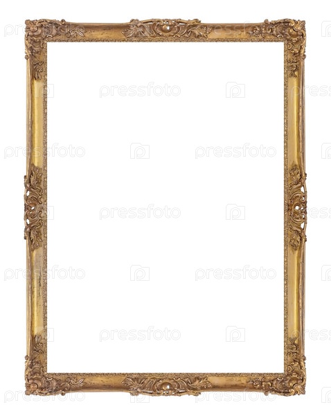 Золотая рама для картин, зеркал или фотографий, изолированных на белом фоне