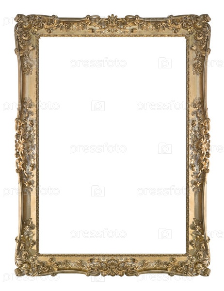 Золотая рама для картин, зеркал или фотографий, изолированных на белом фоне