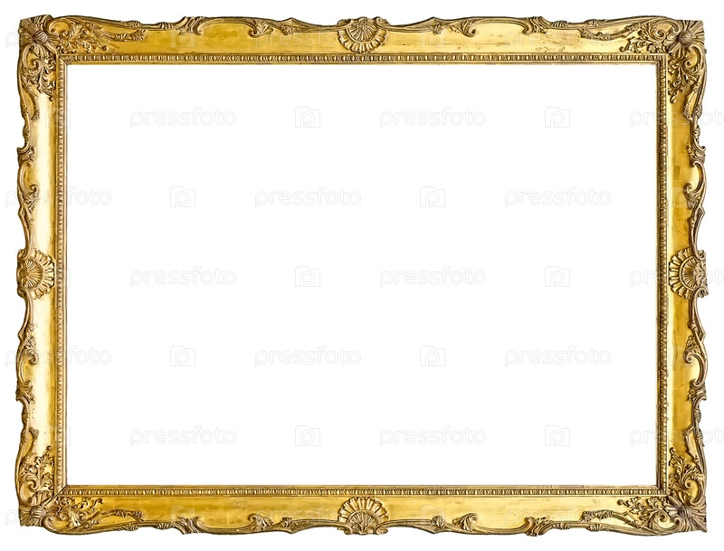 Золотая рама для картин, зеркал или фотографий, изолированных на белом фоне с готовым вырезом