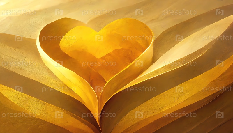 Золотая форма сердца, сформированная слоевыми песчаными дюнами, освещенными теплым солнечным светом в сюрреалистической пустыне