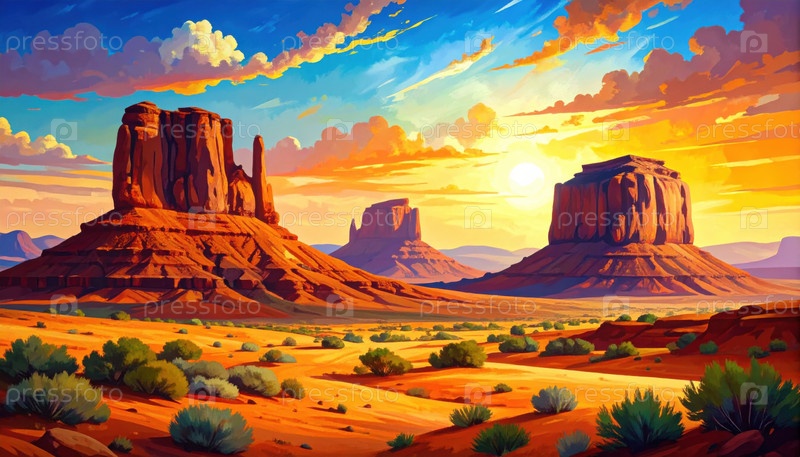 Яркий пустынный пейзаж с сапогами и драматическим закатом солнца, идеально подходит для рекламы путешествий, западных тем или повествования вдохновленного природой