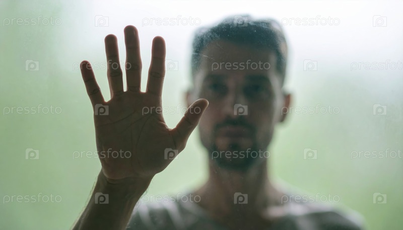 Рука человека прижата к стеклу, символизируя тоску, разделение, интроспекцию и эмоциональные границы в личном или психологическом контексте