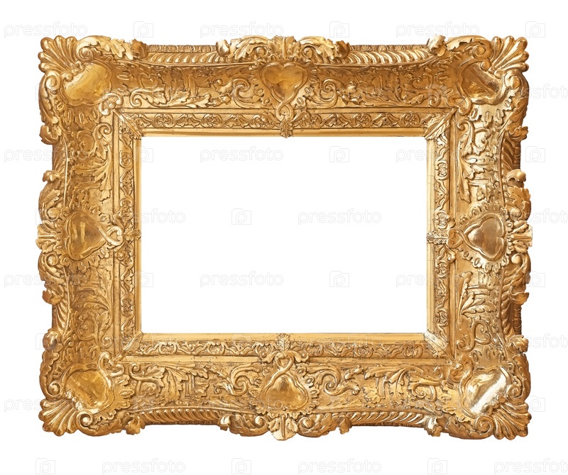Золотая рама для картин, зеркал или фотографий, изолированных на белом фоне