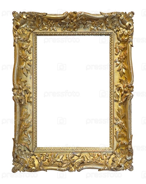 Золотая рама для картин, зеркал или фотографий, изолированных на белом фоне