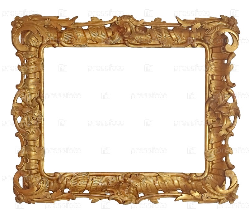 Золотая рама для картин, зеркал или фотографий, изолированных на белом фоне