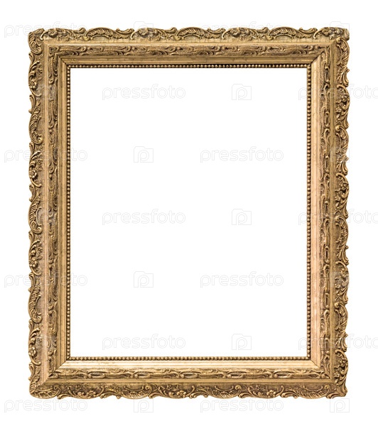 Золотая рама для картин, зеркал или фотографий, изолированных на белом фоне