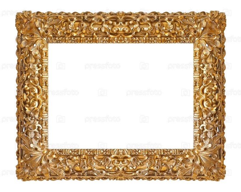 Золотая рама для картин, зеркал или фотографий, изолированных на белом фоне