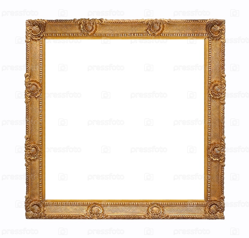 Золотая рама для картин, зеркал или фотографий, изолированных на белом фоне