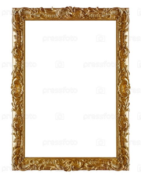 Золотая рама для картин, зеркал или фотографий, изолированных на белом фоне