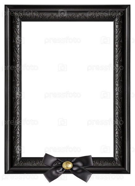 Черная деревянная рама с черной скорбной лукой для картин, зеркал или фотографий, изолированных на белом фоне