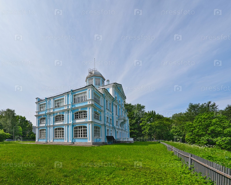 Особняк Воронцова (Особняк Новоznamenка, Санкт-Петербург), голубо-белый дворец в барокко стиле Треццини и Ринальди, летний вид с зеленой лугой