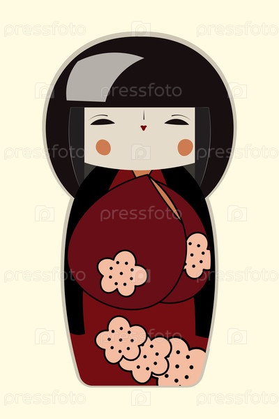Векторная графика: Японская кукла (Kokeshi) в традиционном национальном костюме