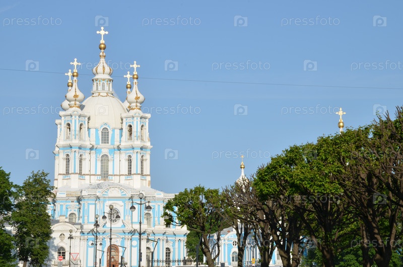 Смольный собор православная церковь в стиле барокко (участник культурного наследия России) в солнечный летний день