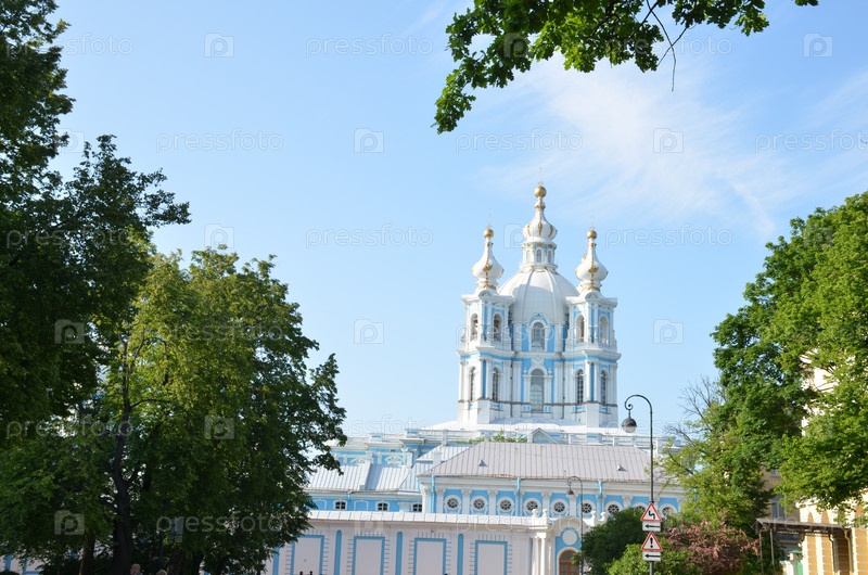 Смольный собор православная церковь в стиле барокко (участник культурного наследия России) в солнечный летний день