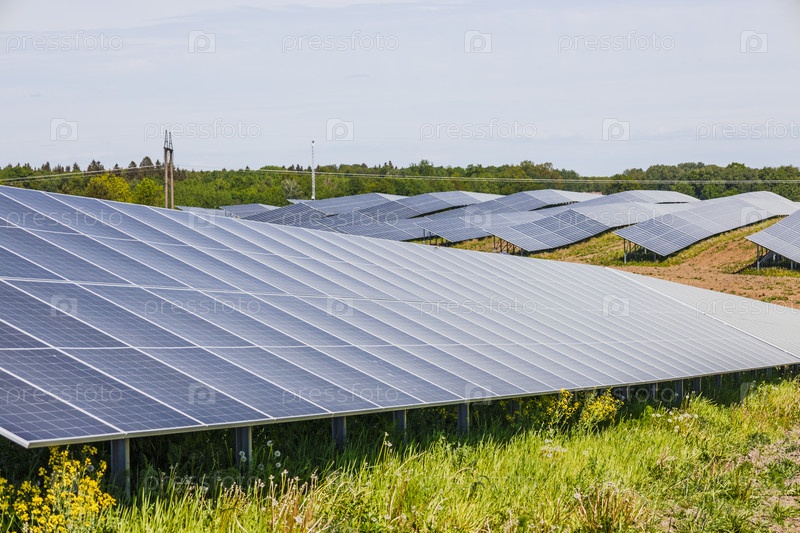 Солнечная панель на зеленом поле генерирует возобновляемую энергию из солнечного света