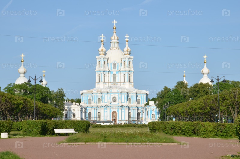 Смольный собор православная церковь в стиле барокко (участник культурного наследия России) в солнечный летний день
