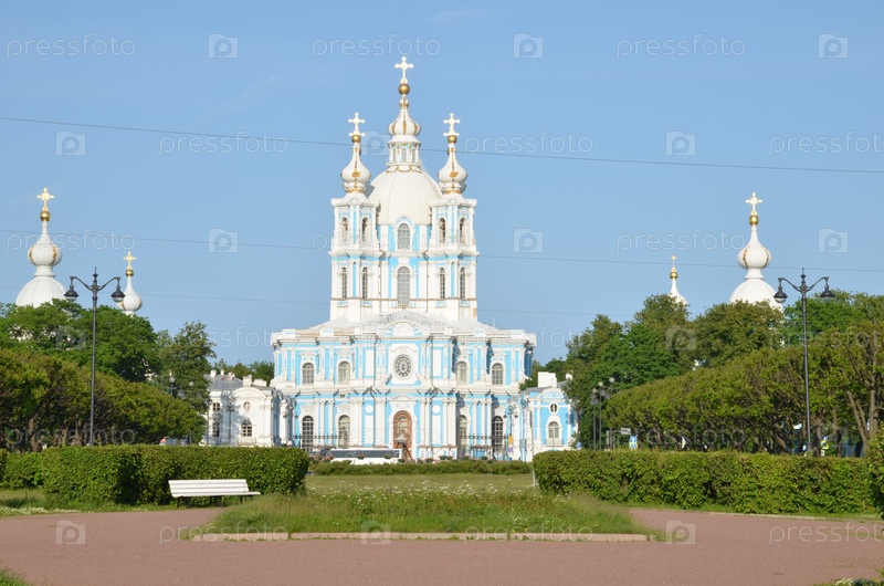 Смольный собор православная церковь в стиле барокко (участник культурного наследия России) в солнечный летний день