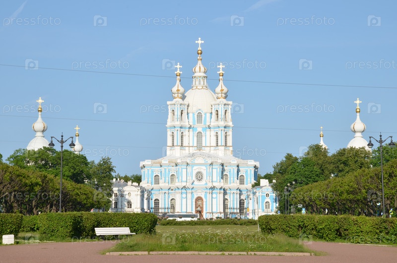 Смольный собор православная церковь в стиле барокко (участник культурного наследия России) в солнечный летний день