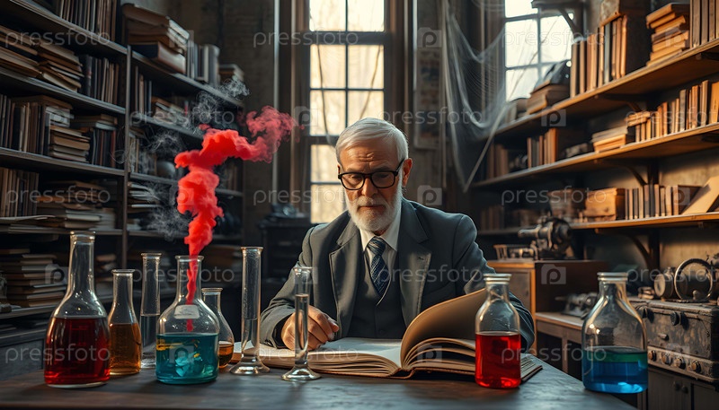 Старый ученый в заброшенной лаборатории искусственного интеллекта