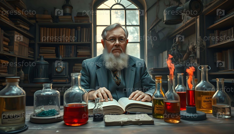 Старый ученый в заброшенной лаборатории искусственного интеллекта