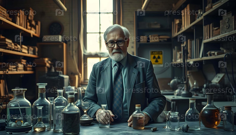 Старый ученый в заброшенной лаборатории искусственного интеллекта