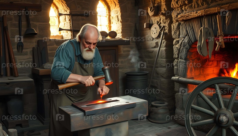 Старый сельский кузнец AI Generative
