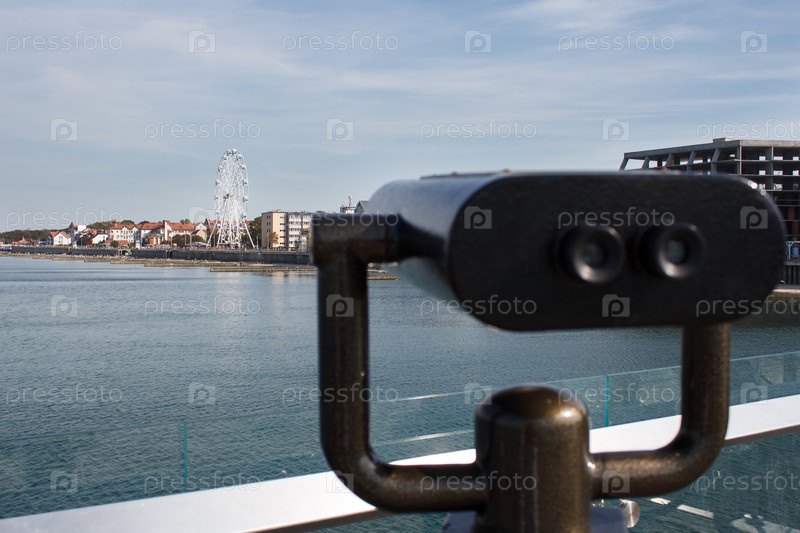 Стационарные бинокли для наблюдения в городе летом. смотровая площадка на море