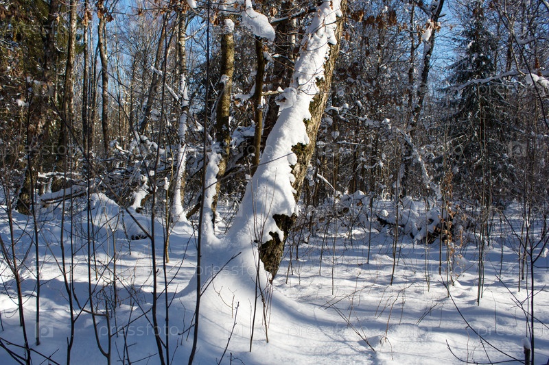 Лесной пейзаж в солнечный зимний день