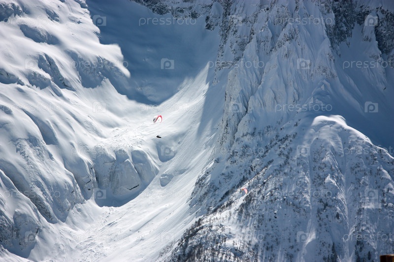 Полет на планере через зимние горы