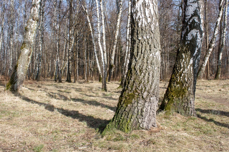Лесной пейзаж ранней весны в солнечный день