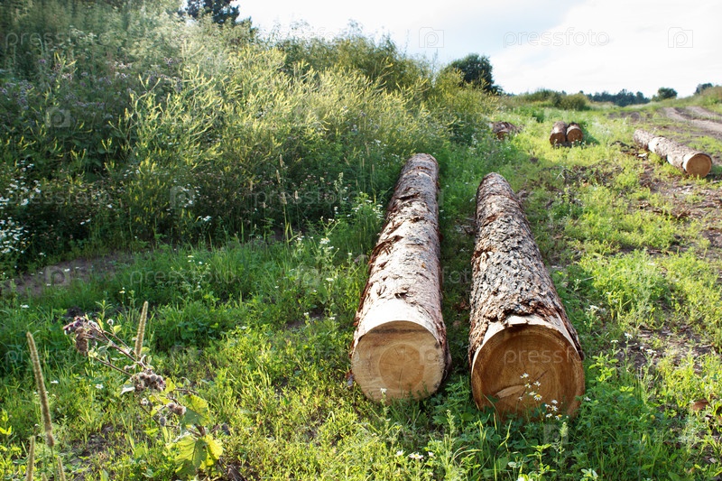 Сосновые бревна готовы к транспортировке, когда они вырублены на улице в летний день