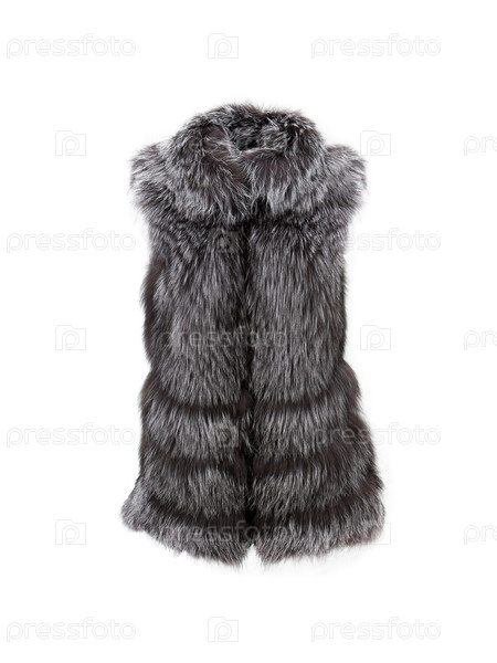 Роскошный серый меховой жилет из белой лисистой шерсти, изолированный на белом фоне
