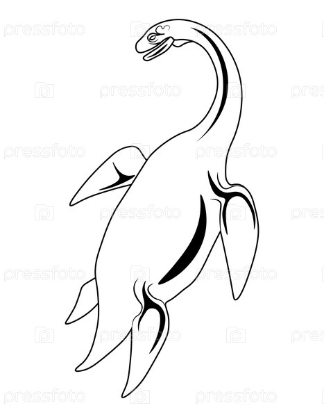 Вектор черно-белого доисторического животного (криптоклидов), изолированный на белом фоне
