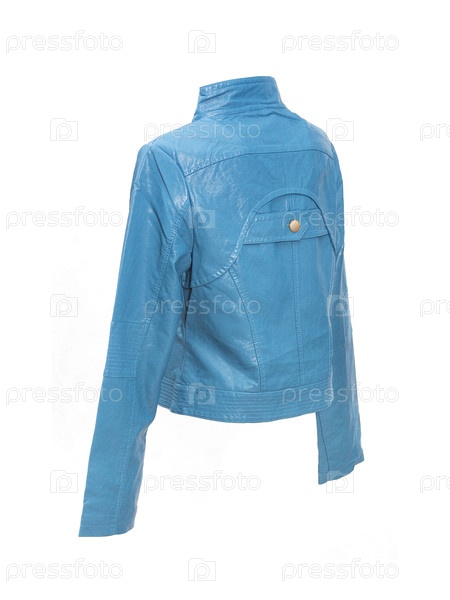 Туркуазная короткая кожаная куртка изолирована на белом фоне