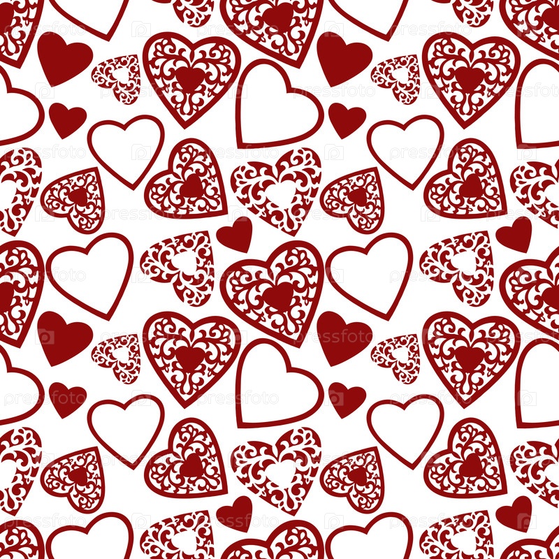 Векторный бесшовный рисунок с резными декоративными сердцами