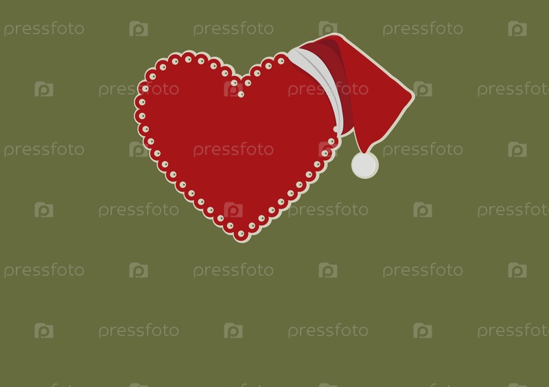Векторный рождественский плакат с вырезанным декоративным сердцем и шляпой Санты