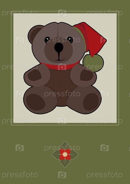 Рождественская или новогодняя открытка с игрушкой Медведя в красной рождественской шляпе