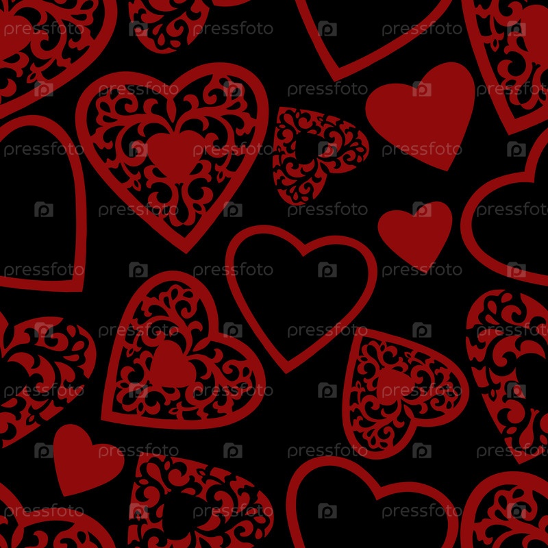 Векторный бесшовный рисунок с резными декоративными сердцами