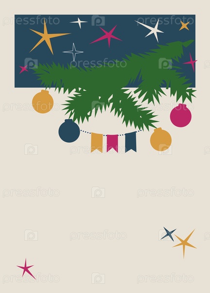 Векторная открытка с рождественской елкой, сосновыми шишками и гирляндой в винтажном стиле