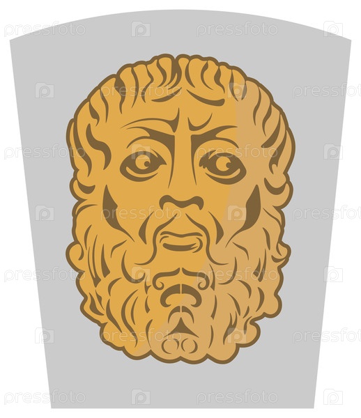 Декоративная золотая голова древнего бога изолирована на белом фоне