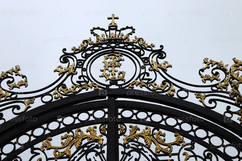 Санкт-Петербург, Россия, 22 августа 2024 года: фрагмент позолоченных ворот у входа во внутренний двор Екатерининского дворца