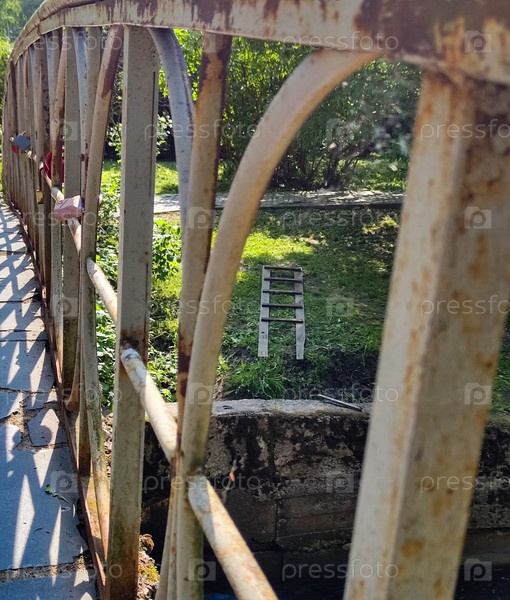 Вид через перила на старой лестнице