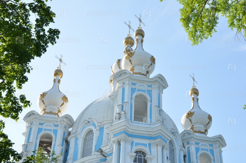 Смольный собор православная церковь в стиле барокко (участник культурного наследия России) в солнечный летний день