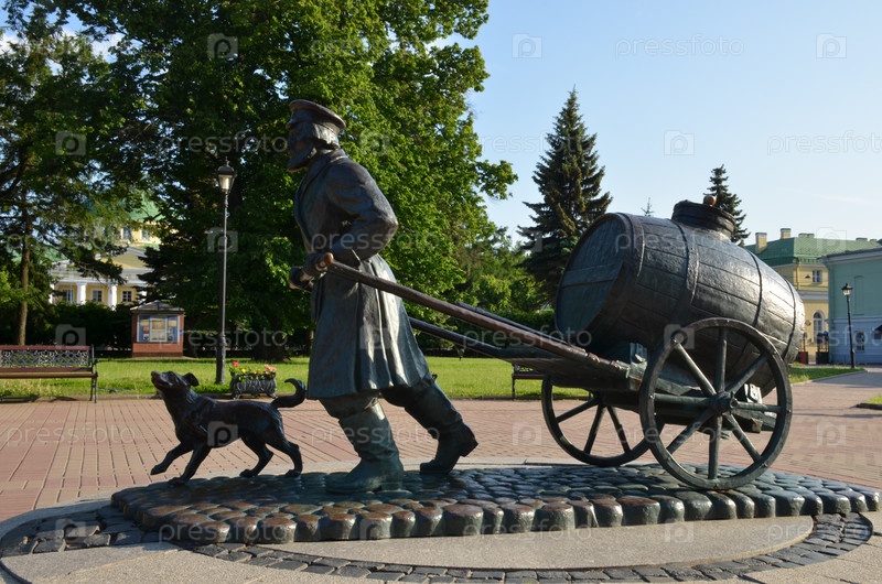 Памятник петербургскому водоносцу - жанровая скульптура в музейном комплексе 'Вселенная воды' на улице Шпалерной в Санкт-Петербурге
