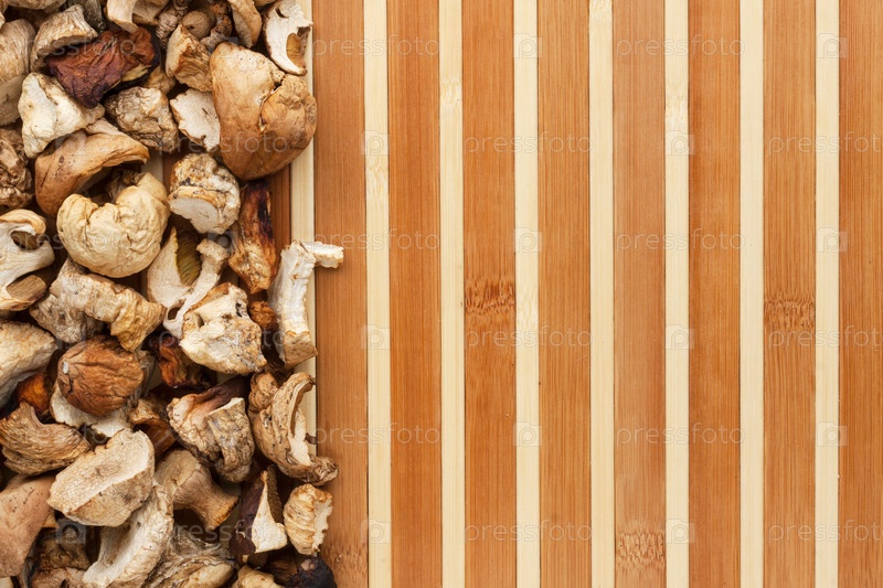 Сушеные грибы на бамбуковом коврике