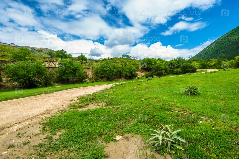 Красивый горный пейзаж с грунтовой дорогой.Дагестан, Кавказ